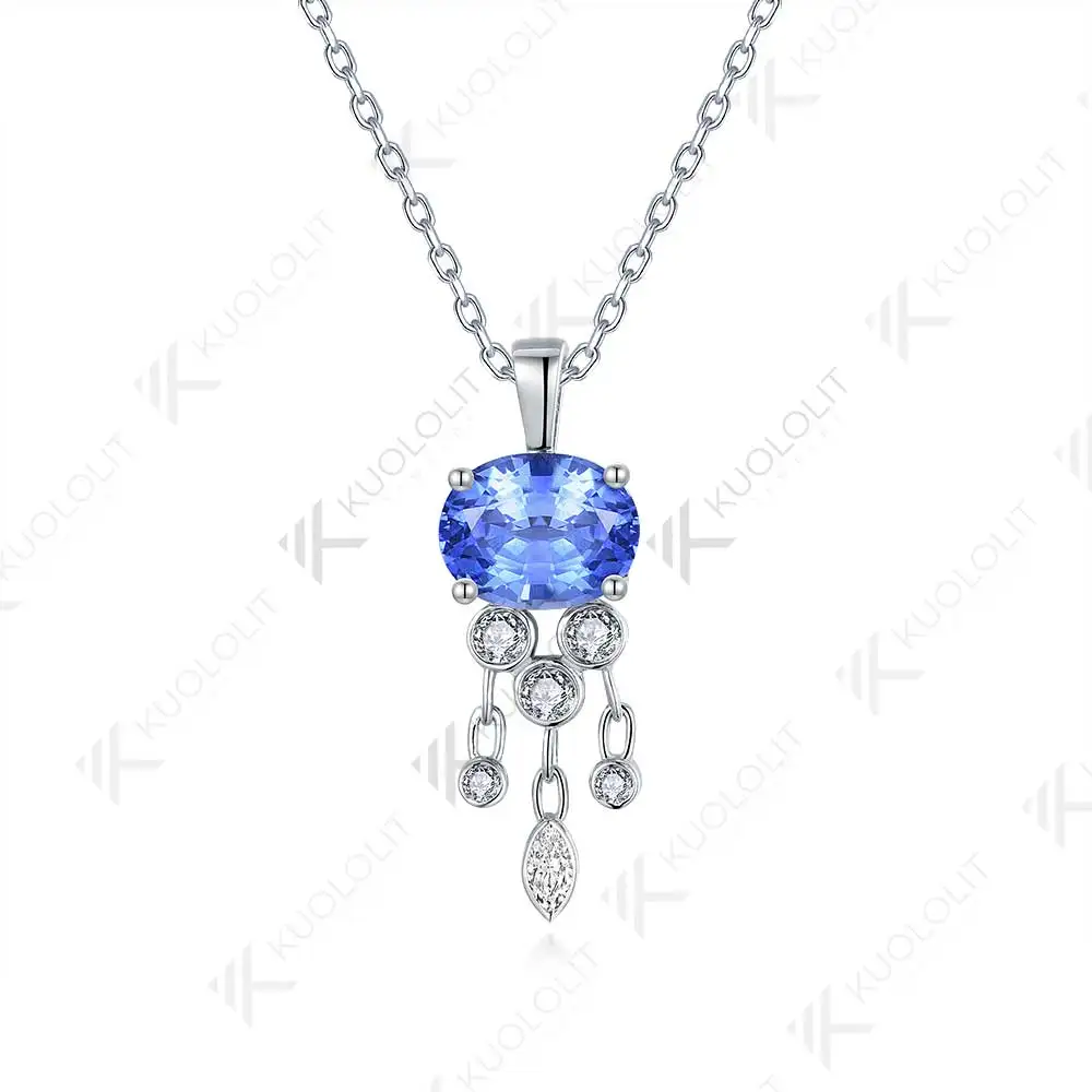 Kuololit 3CT Lab Grown Blue Sapphire with Moissanite Necklace for Women Solid 18K 14K 10K 585 Yellow Gold Pendant for Christmas