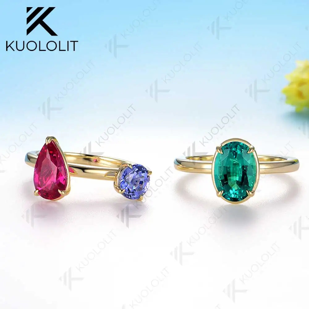 Kuololit 6.5CTW Lab Grown Eemerald Ruby Blue Sappphire Rings for Women Soild 14K 585 Gold Set Ring for Engagement Christmas Gift