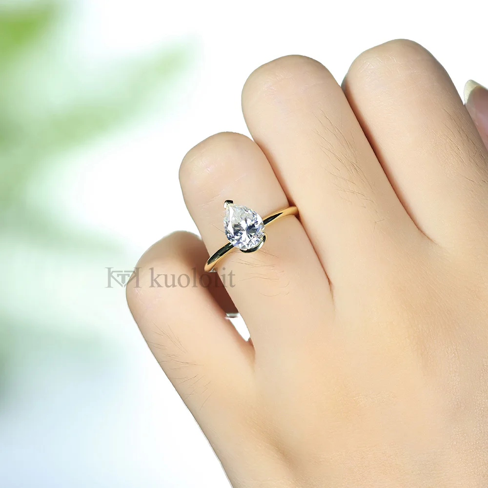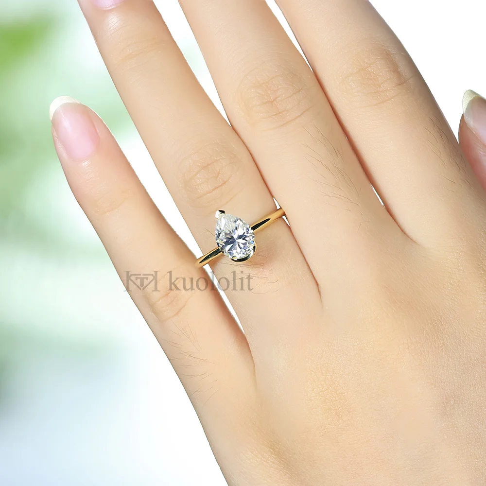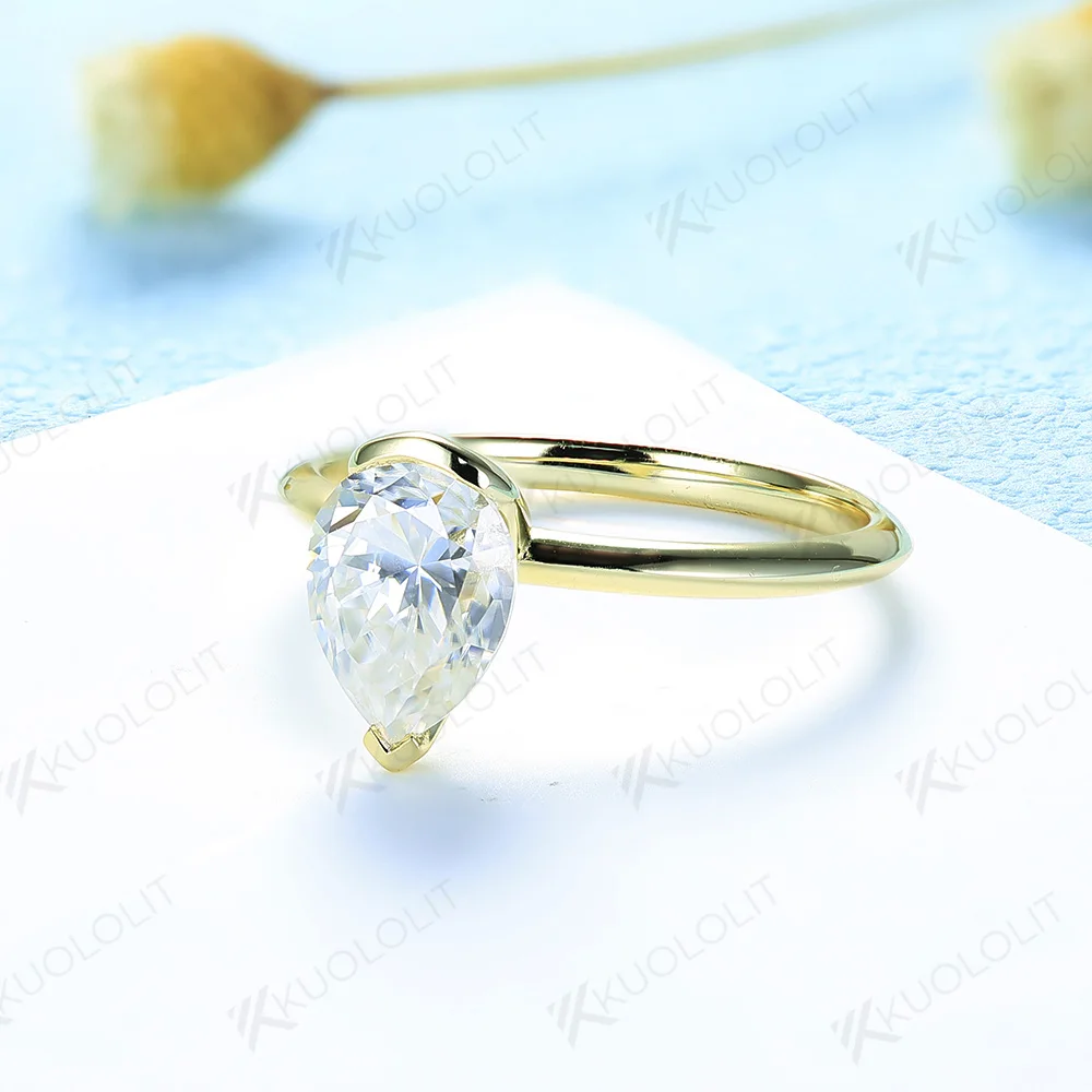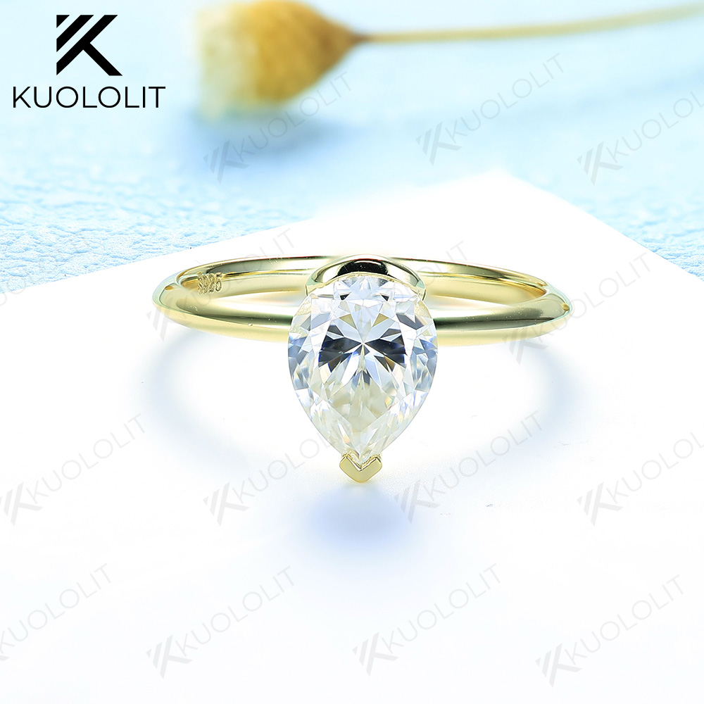 Kuololit Moissanite Rings for Women Solid 18K 14K 10K 925 Sliver Yellow Gold 1.5CT Pear Cut for Anniversary Wedding Engagement